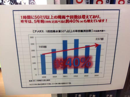 しかし、年々集中的なゲリラ豪雨は、増加傾向にあるとのことです。