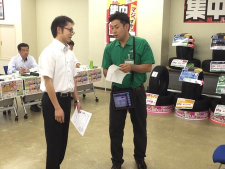 スタッフも十人いれば十通りの商談の仕方があります。この場で、自分には足りない他のスタッフの良い所を吸収し実際店舗でお客様の商談の中で活かすことによって、お客様がタイヤを選ぶ際アドバイスをして気持ち良くタイヤを購入していただく。
