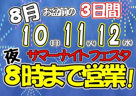 来週の平日3日間(10.11.12日)サマーナイトフェスタと称しまして