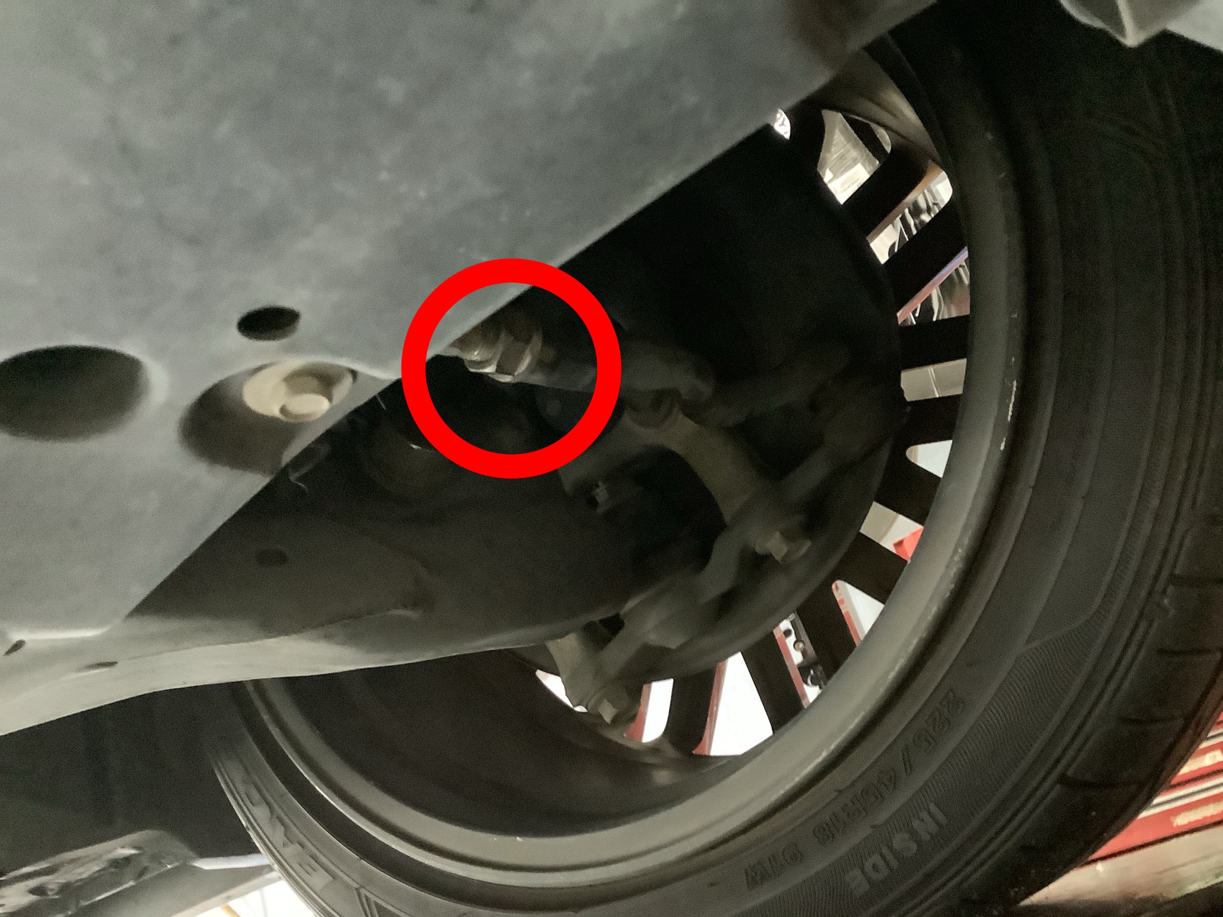 その次にフロントトーを調整して終了です。(赤丸がフロントトーです)
