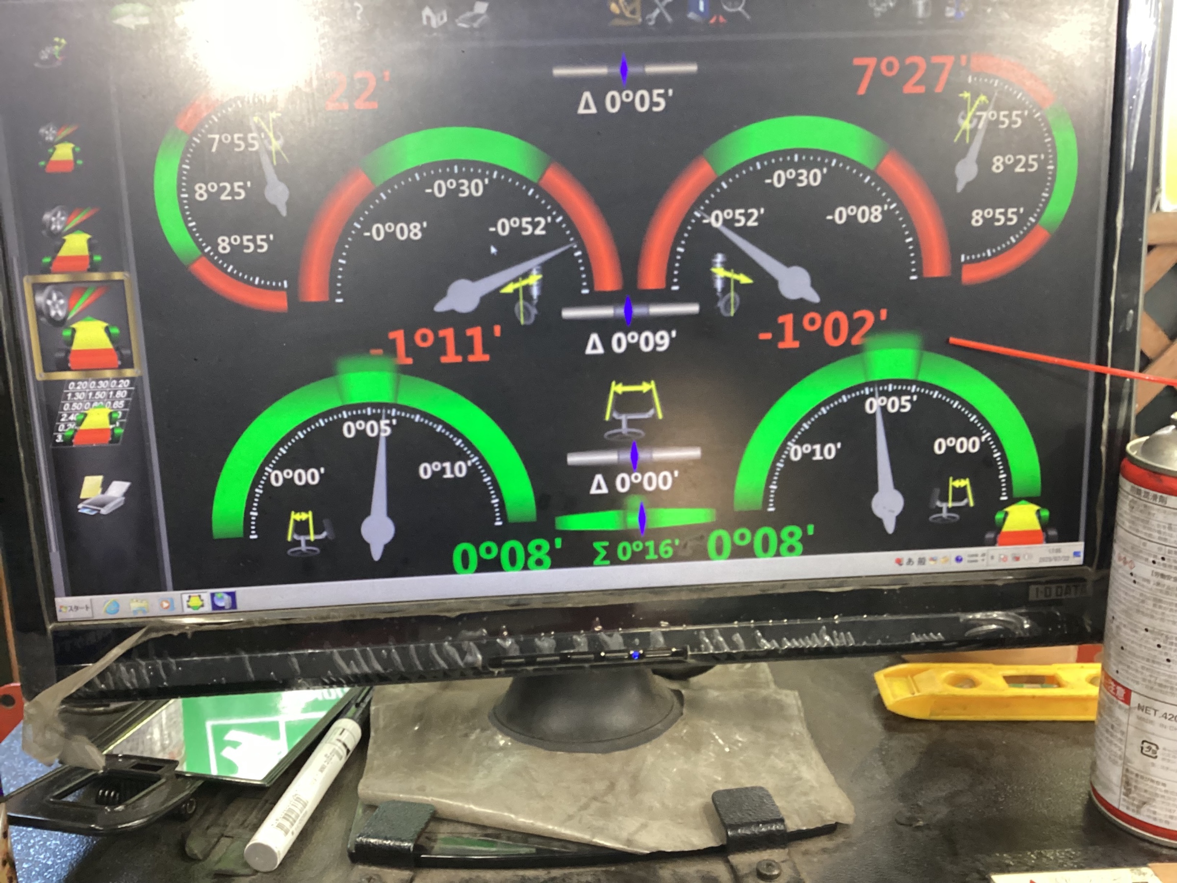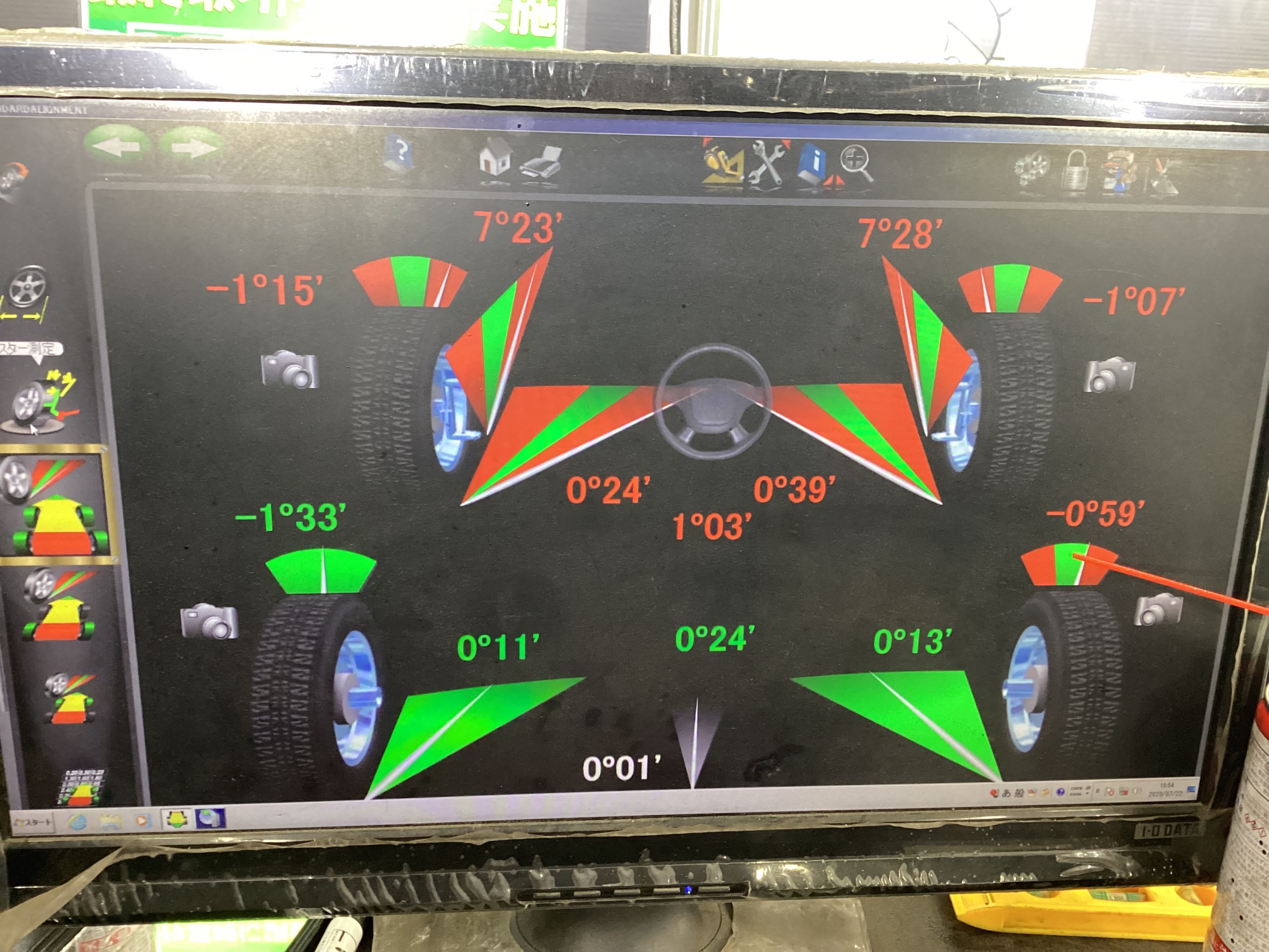 まず測定をして大分トーインになっていましたので調整しています。