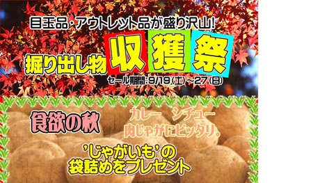 9/19より9/27まで掘り出し物収穫祭を開催致します!