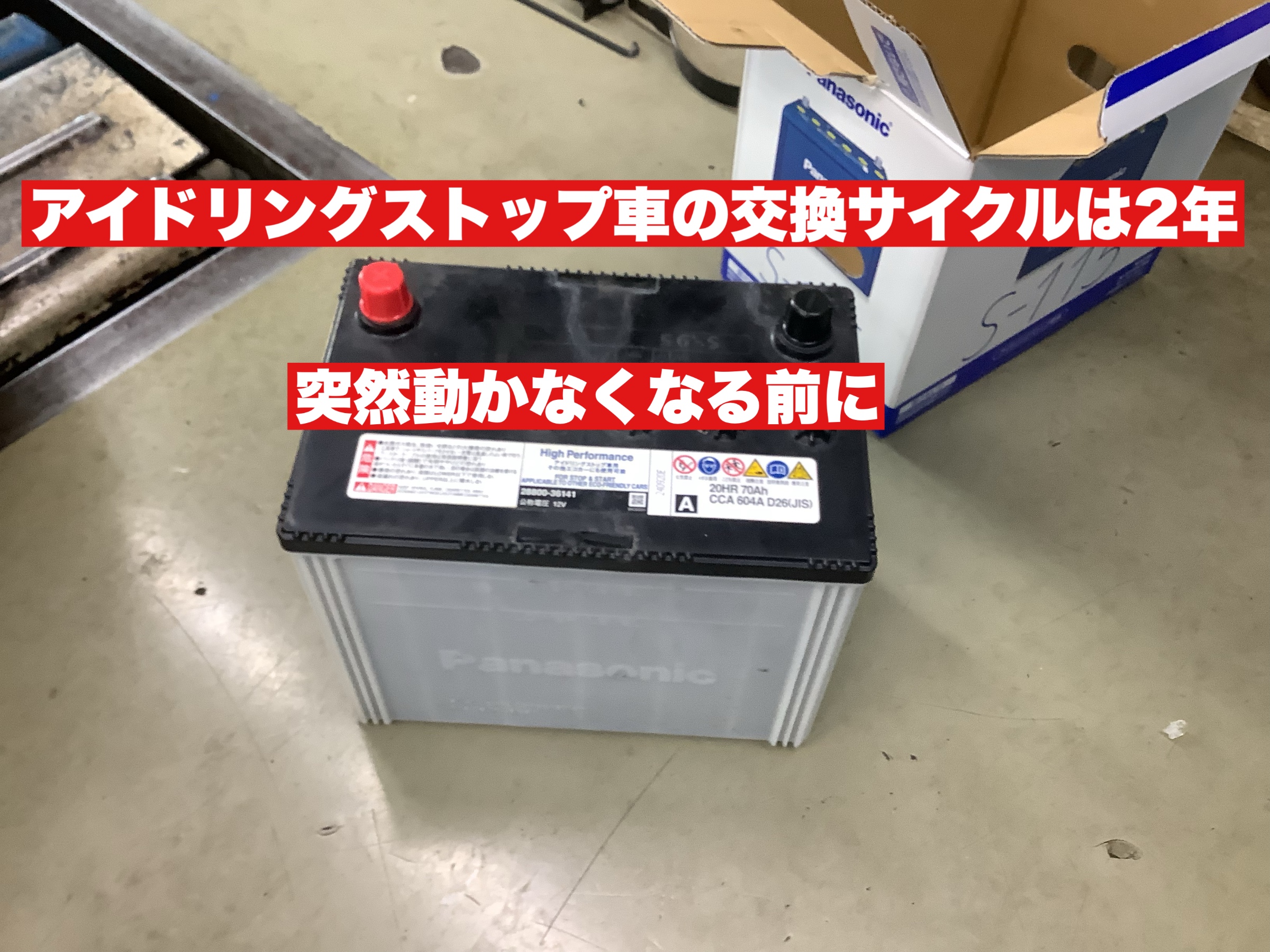 アイドリングストップ車でしたので交換をオススメし作業しました。