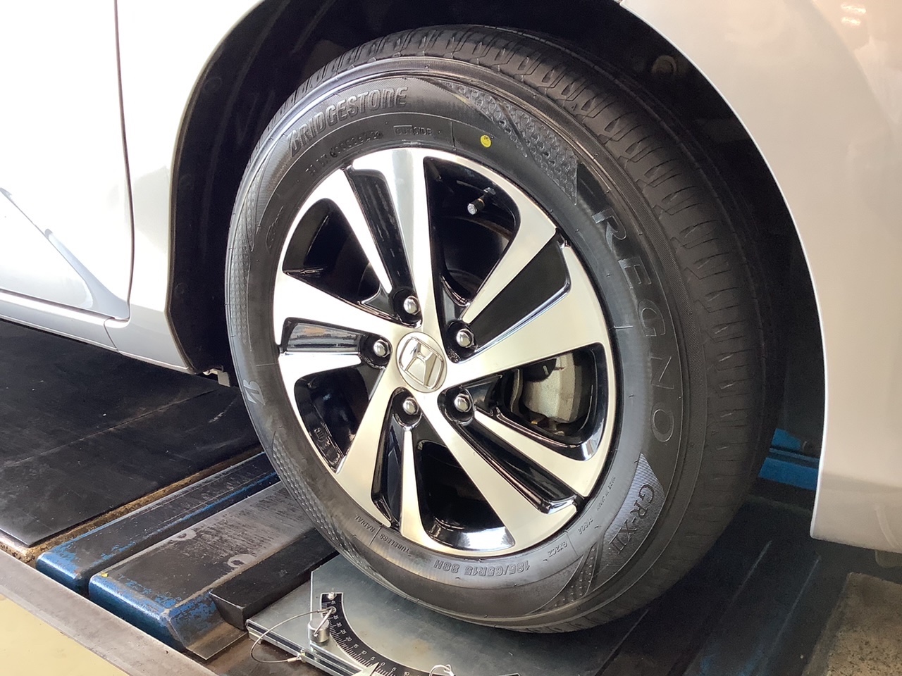 タイヤの角度調整「アライメント調整」も実施です。