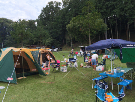 今回はご近所家族とのキャンプ。前回と違い二日間とも晴天に恵まれリベンジ達成!初日は13時にチェックインしまずは昼食作り!昼食を食べ2時半くらいからテントを張りはじめました。