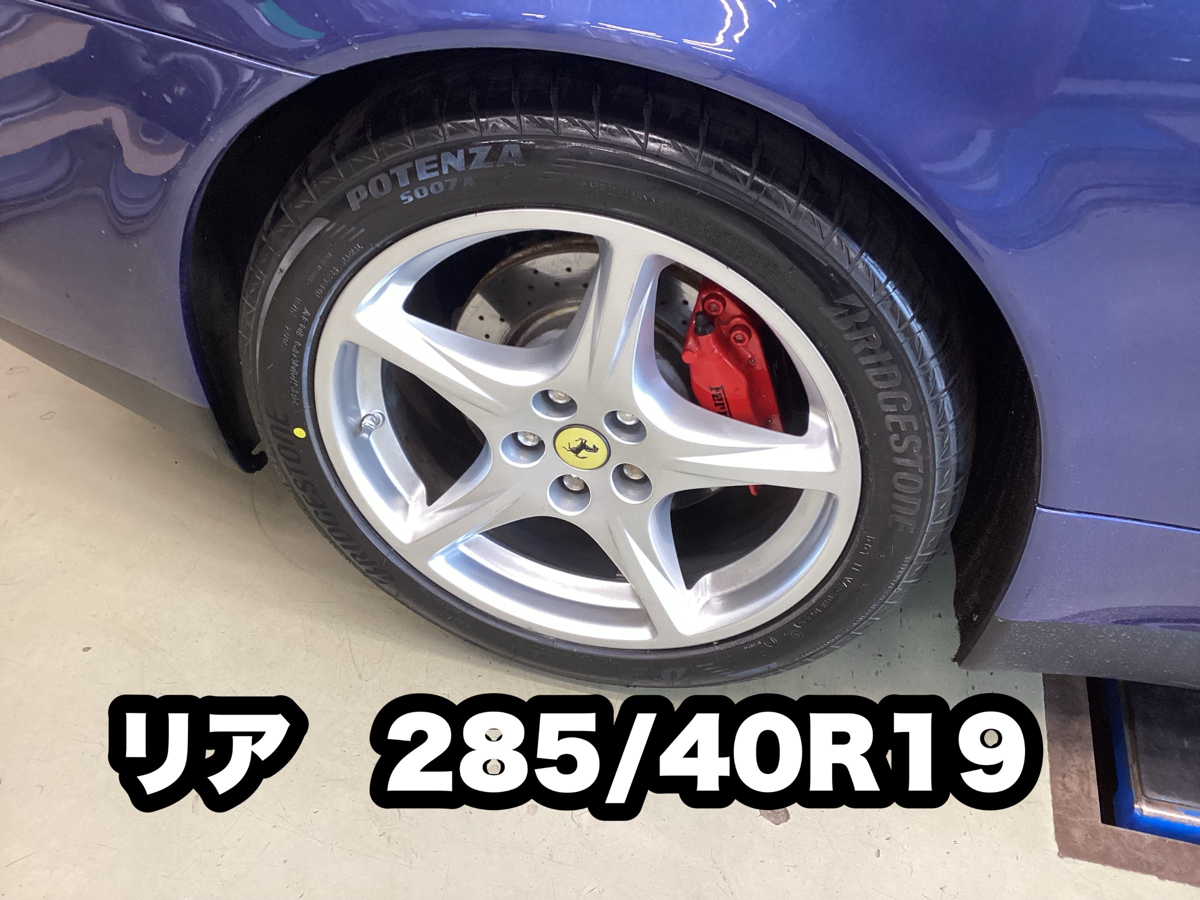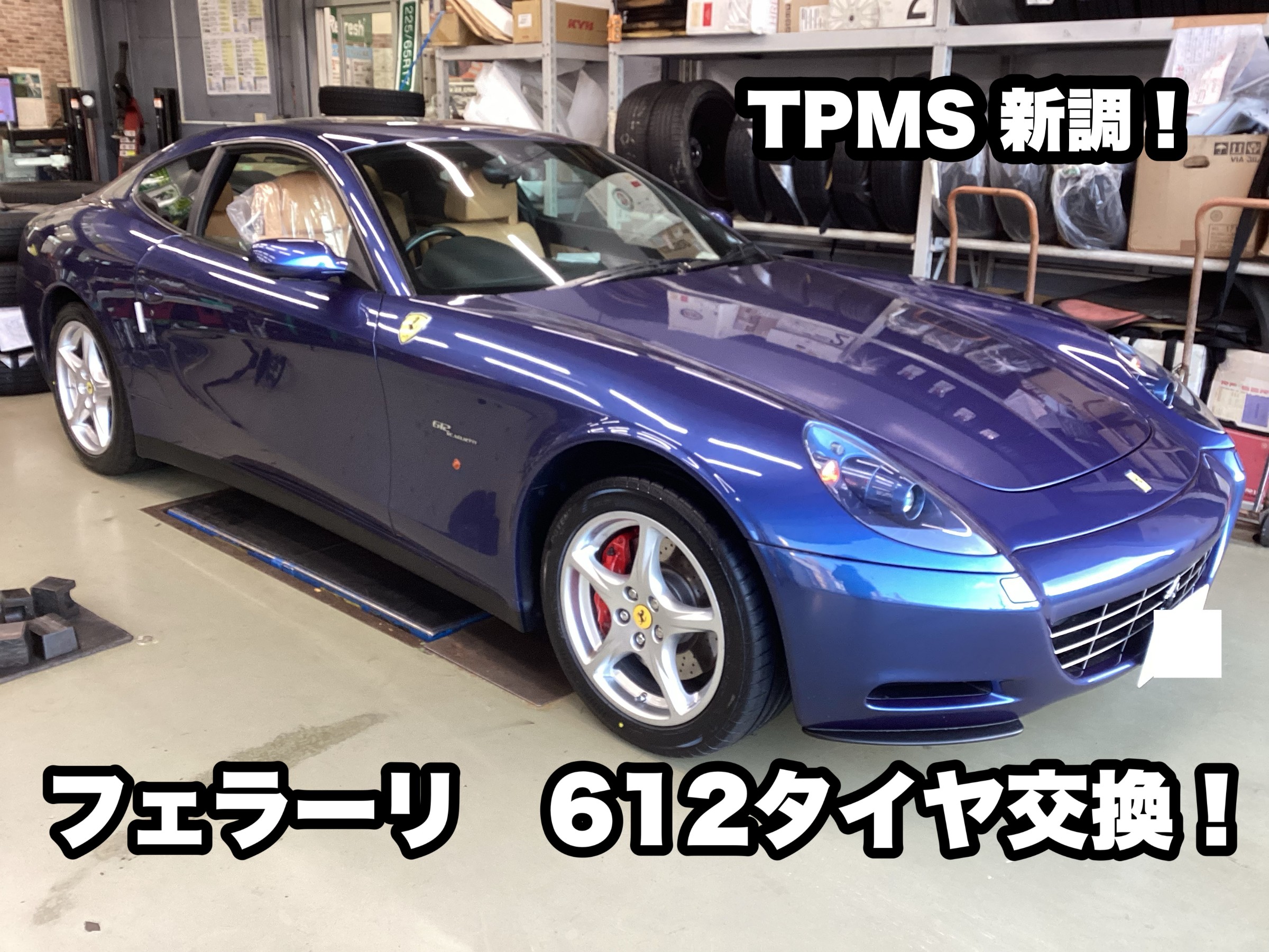 フェラーリ612のタイヤ交換&空気圧センサーキャリブレーションの実施です!