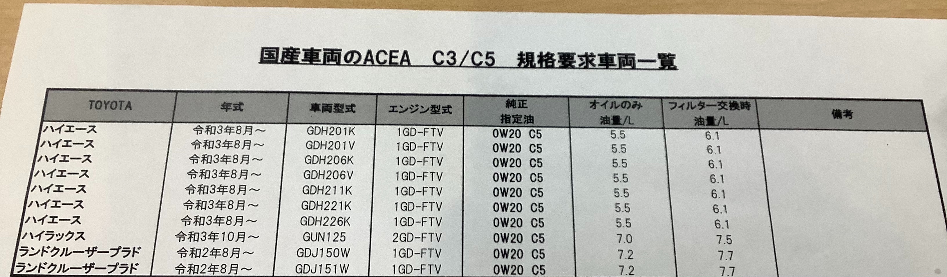 こちらのオイルはトヨタのディーゼルエンジンの純正規格で0W-20 C5