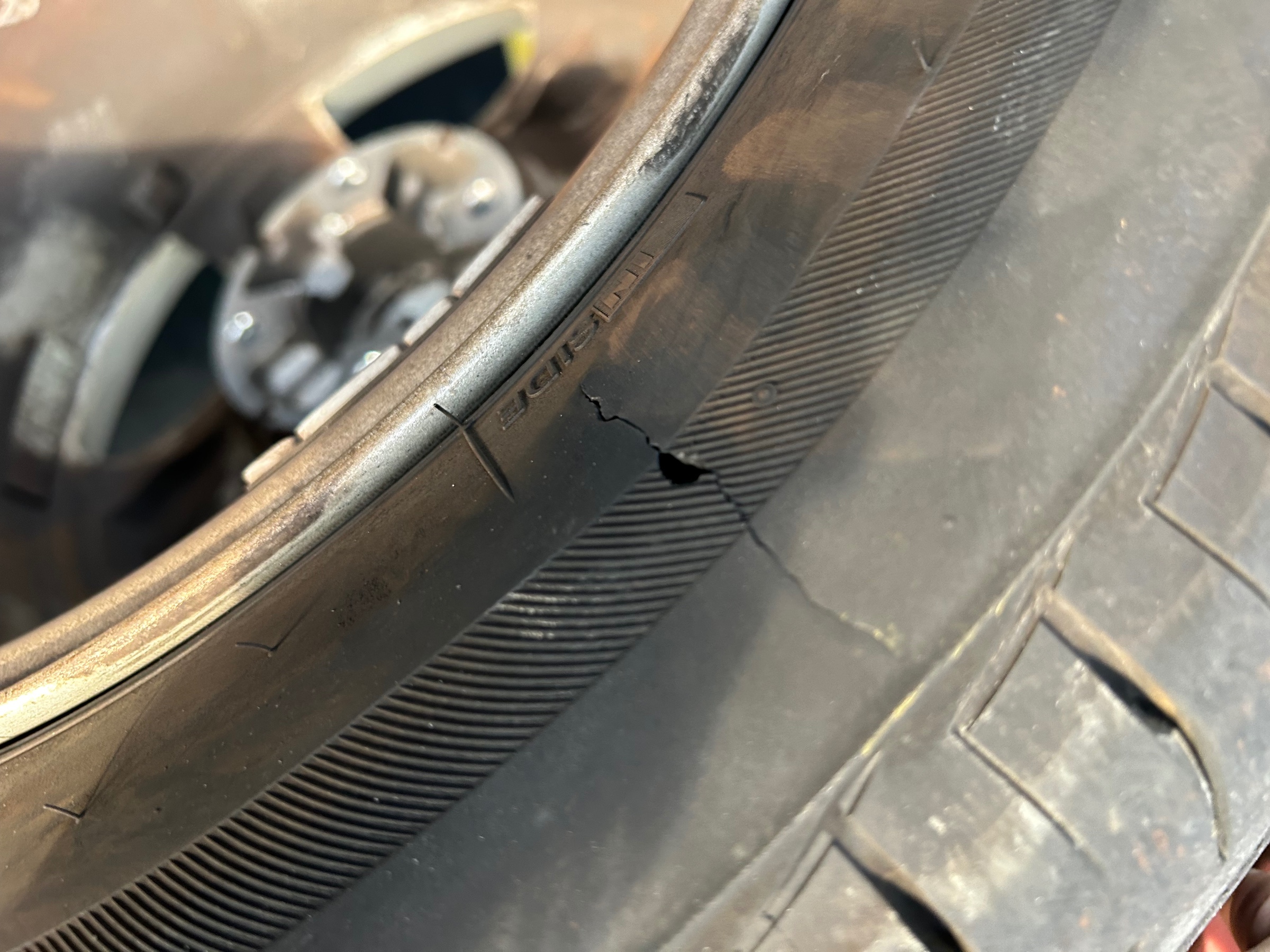 パンク、縁石にぶつけてしまったその傷を