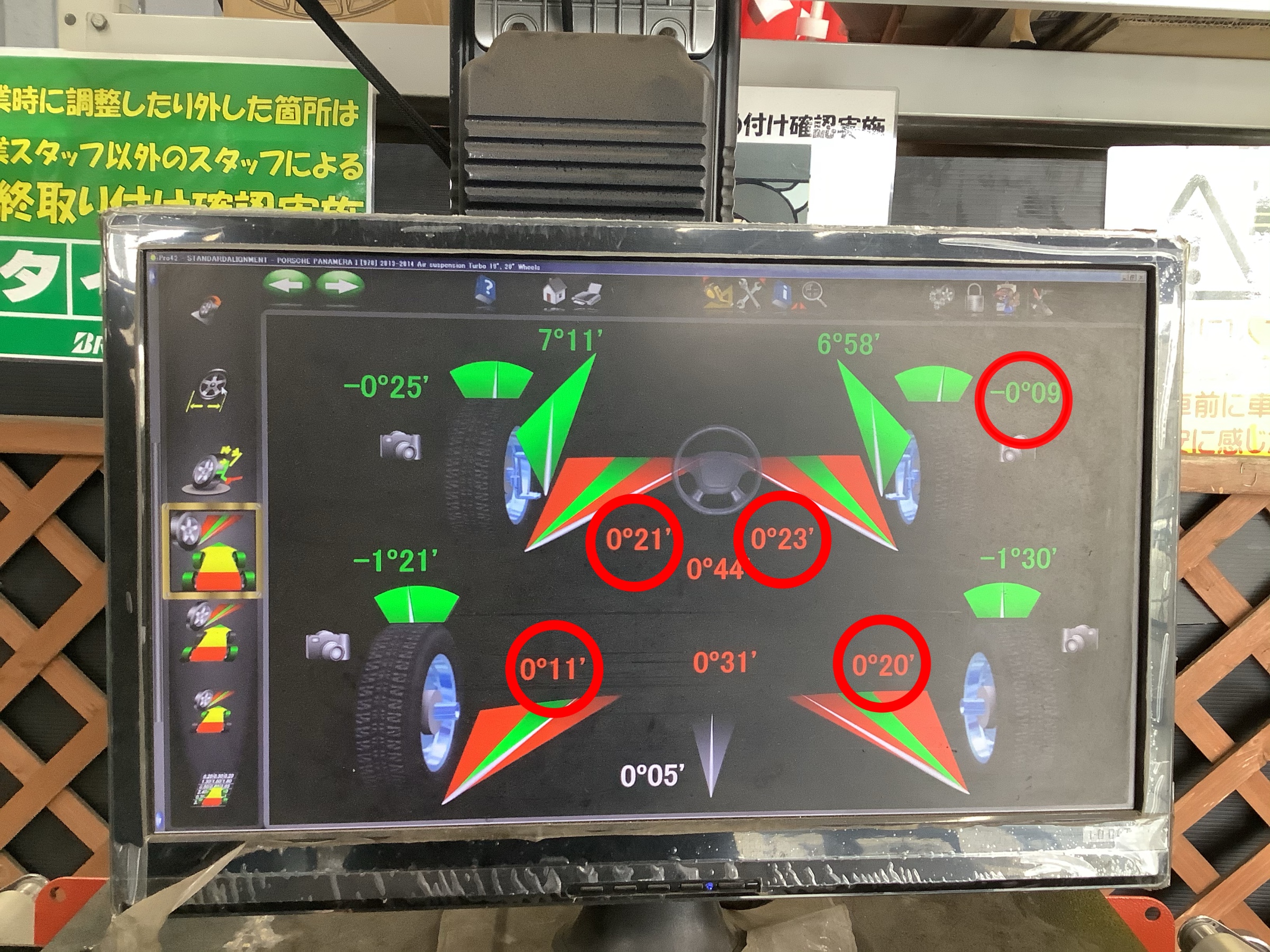 本日はポルシェ パナメーラのアライメント測定+調整を行いました!