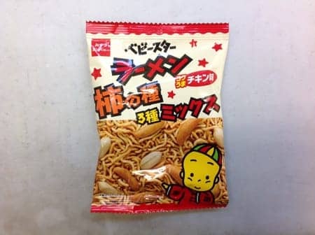 この商品はなんと、柿ピーとベビースターが同時に食べられるんです!