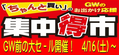 毎度皆様から大好評を頂いております『集中得市』が4月16日(土)~4月24日(日)迄絶賛開催中です!