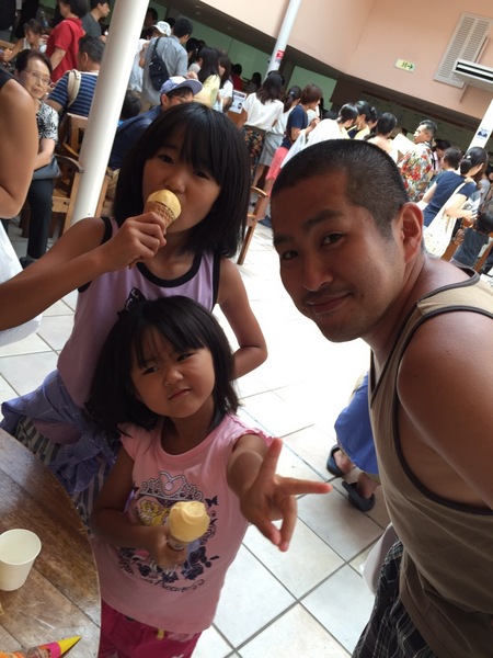 今年は暑くていけそう!一緒に行った家族の長男が勝負を挑んできたので受けてたち、