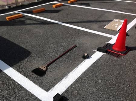 ラインの白線をペイントです!