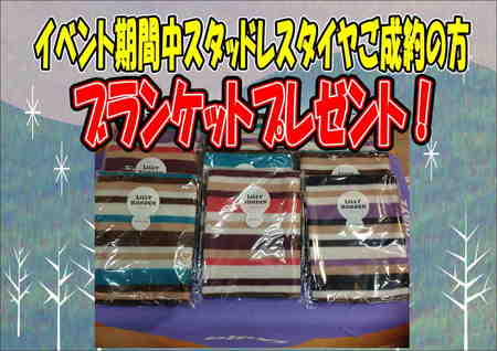 そして、この3日間でスタッドレスタイヤご成約のお客様は「ブランケット」をもれなくプレゼント!!