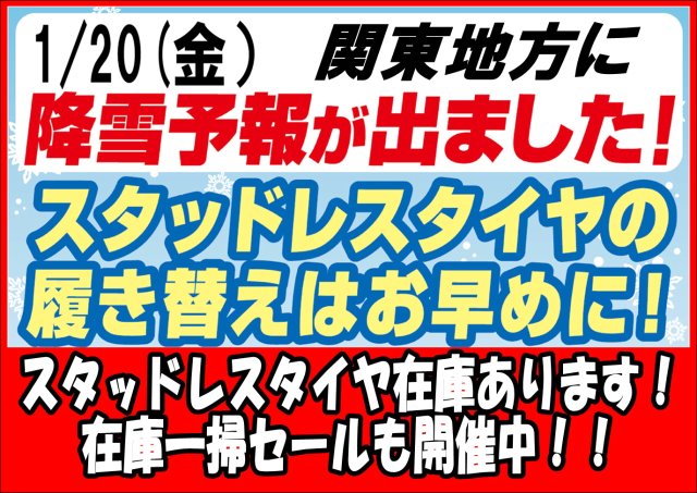 ただいま池上店はスタッドレスタイヤ在庫一掃セール中です!!