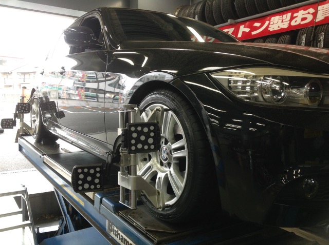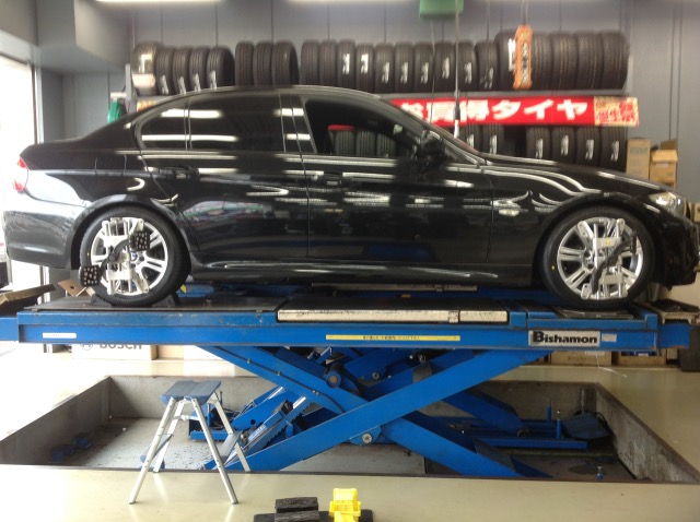 本日はBMW E90のタイヤ交換とアライメント調整です。