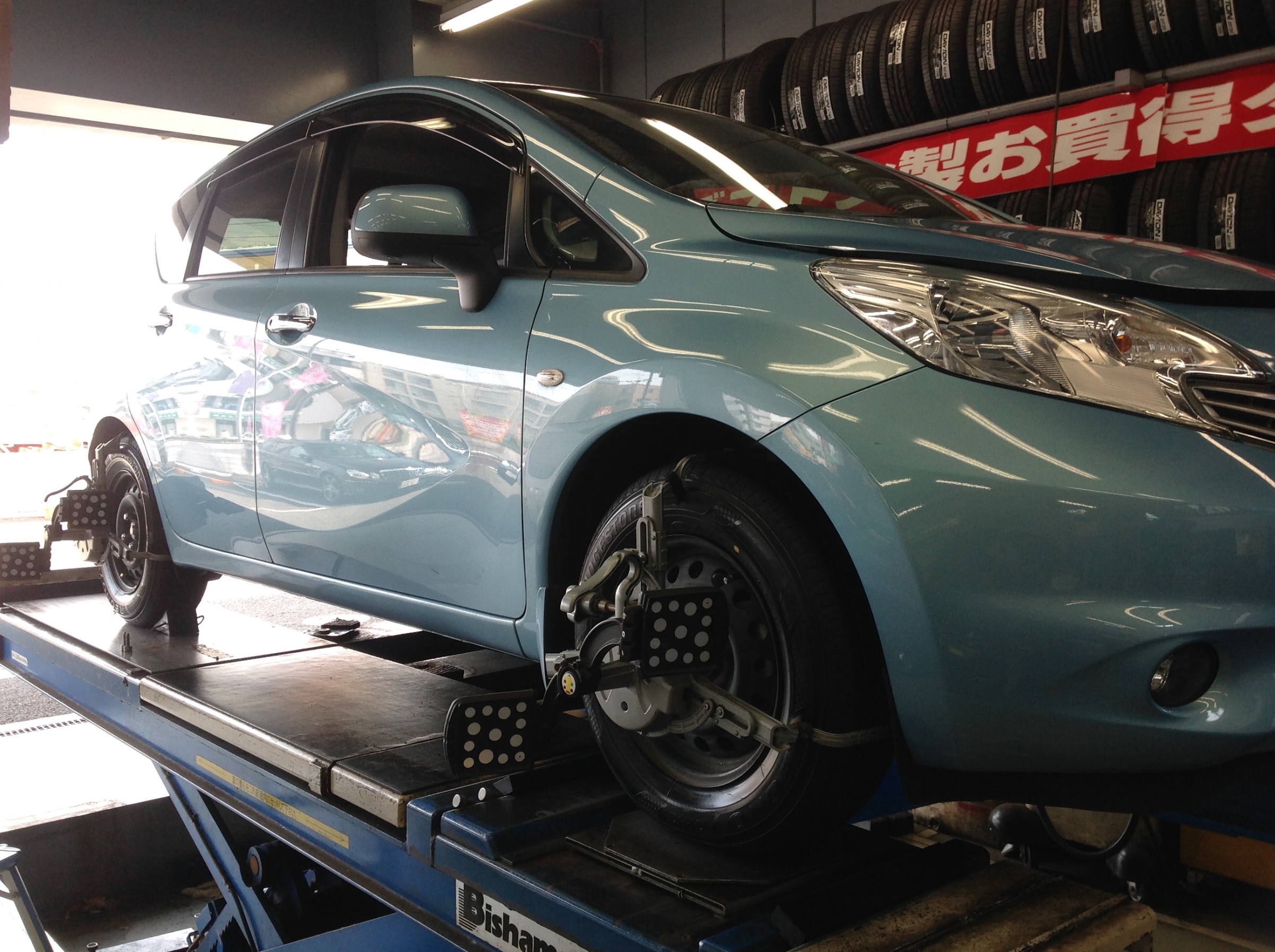 先日実施させて頂いた日産ノートのタイヤ交換とホイールアライメント調整の様子です。