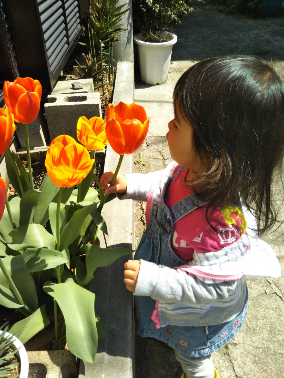 先日の休日にふと気づいたのですが、我が家にチューリップが咲いておりました。