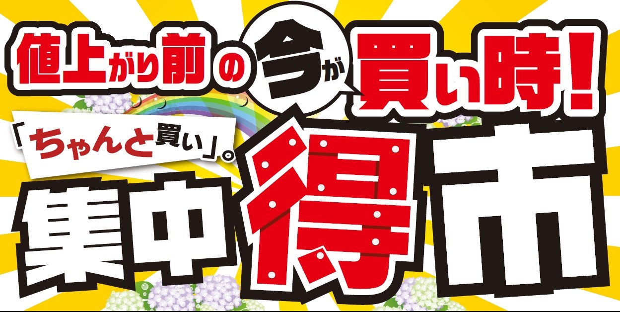 値上がり前の最後の「集中得市」を明日から開催いたします!!!