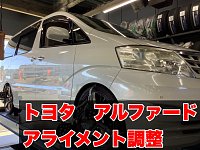 今回はトヨタ アルファードのアライメント測定をしております。 今回はお客様が高速でハンドルの振動がすごいと言う事で 当店に来店されました。 フロントのみの調整が可能になります。 測定結果はこちらです! 今回はフロントのトーの調整をしました! お客様に試乗をしてもらい、 ハンドルのブレ...