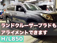 皆さんこんにちは、こんばんは♪ 閲覧ありがとうございます。 本日はランドクルーザープラドのタイヤ交換とアライメント作業を実施! このサイズのお車もアライメント可能です。 装着タイヤ H/L850 サイズ 265/65R17 ブリヂストンタイヤオンラインストアはこちら センサーはタイヤにチャッキングし...