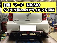 こんにちは。 本日は「ニッサン マーチNISMO」のタイヤ交換とアライメント調整を実施いたしました。 オーテックジャパンがマーチをカスタムし、完成車「マーチ NISMO」として販売ている車両です。 ニスモのパーツが余すことなく使われた人気の車種でもあります。 そんなマーチニスモ! 純正のタイヤ...