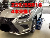 本日も沢山のご来店誠にありがとうございます。 急に気温が下がりましたが、いかがお過ごしでしょうか? 本日はレクサスNXのタイヤ交換事例をご紹介します。 タイヤサイズは235/55R18 パタンはデューラーH/L33を装着しました! こちらがフロントのタイヤです。 続いてリアのタイヤです。 今回は夏タ...