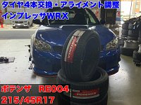 スバルインプレッサWRX ポテンザRE004 4本交換 アライメント調整