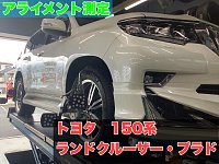 今回はトヨタランドクルーザープラドのアライメント測定をしております。 今回はお客様が高速でハンドルの振動がすごいと言う事で 当店に来店されました。 フロントのみの調整が可能になります。 測定結果は 今回は左右の大きなズレが無くハンドルの振動とアライメントが関係ないので 測定のみの結...