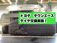 こんにちは。 本日も先月に引き続き働く車の交換作業です! なんか最近私この手の車しかアップしている気がしないですが・・・ 気を取り直して、トヨタ・タウンエースのタイヤ交換です。 タイヤの接地面が裂けちゃってます! 非常に危険な状態でした。 タイヤの劣化・空気圧不足・過積載からなるケ...