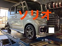 本日はソリオのアライメント調整の作業風景です。 まず車をセンサー(受信機)が読み込む位置まで上げます。 車を上げたら次はタイヤ4輪にセンサー(送信機)を取り付けます。 センサーを取り付けたら何処がどのくらいズレているのか表示されるので確認します。 お次はいよいよ調整に入ります! 車によ...