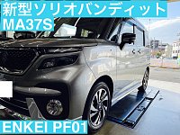 皆さんこんにちは、こんばんは♪ 本日は新型ソリオバンディット MA37SにレグノGR-xⅡとPF01のセットを装置! お客様のご希望でレグノを装着したいとご相談頂きお調べしたところ純正サイズ適合ななくサイズを変更して装置! 165/65R15→175/65R15 ホイール PF01 15x5 4/100 インセット45 車検対応なので...