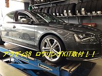 エアサスのS8にロワリングKITにて 2~3CM車高を落としました。 ジェントル仕上げでお客様も大満足です。