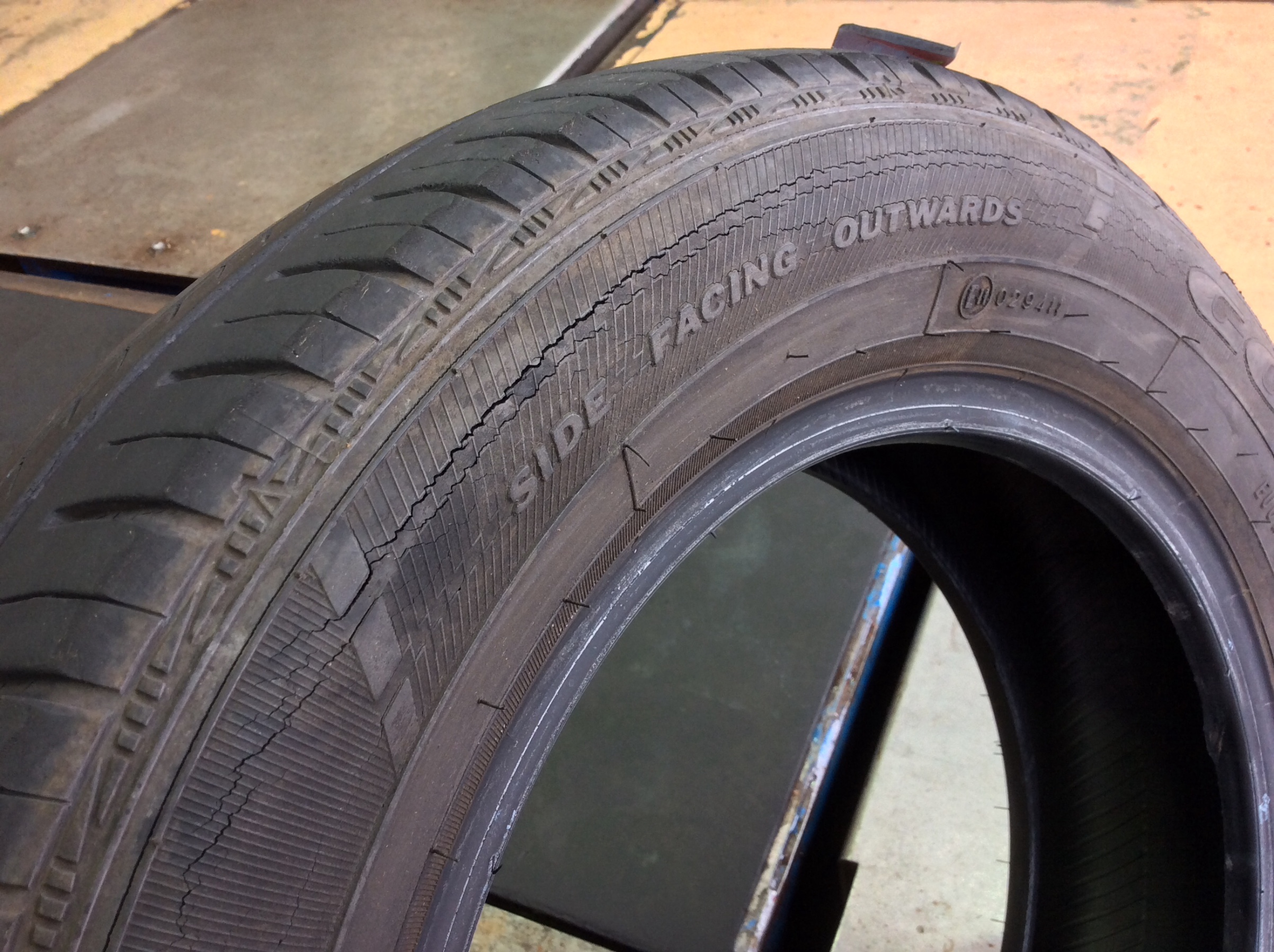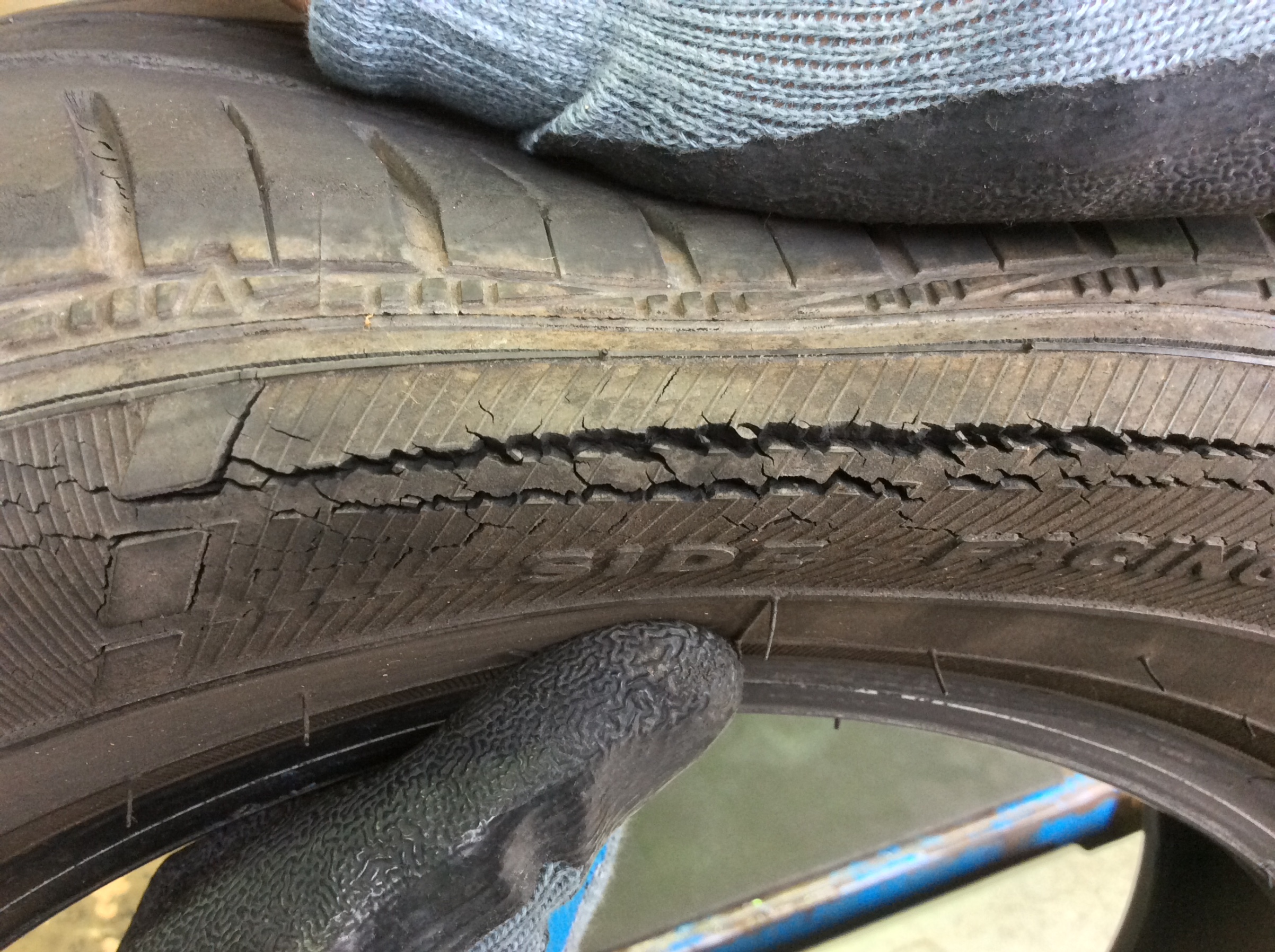 タイヤの骨格にあたる、コードという部分まで、ひび割れが達してしまったタイヤは、安全に使用する事が出来ません。