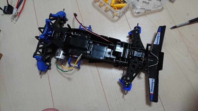 古いRCカーなので、組み立て途中にもプラスチックが破損したりで大変でしたが、なんとか形にすることができました(^^)