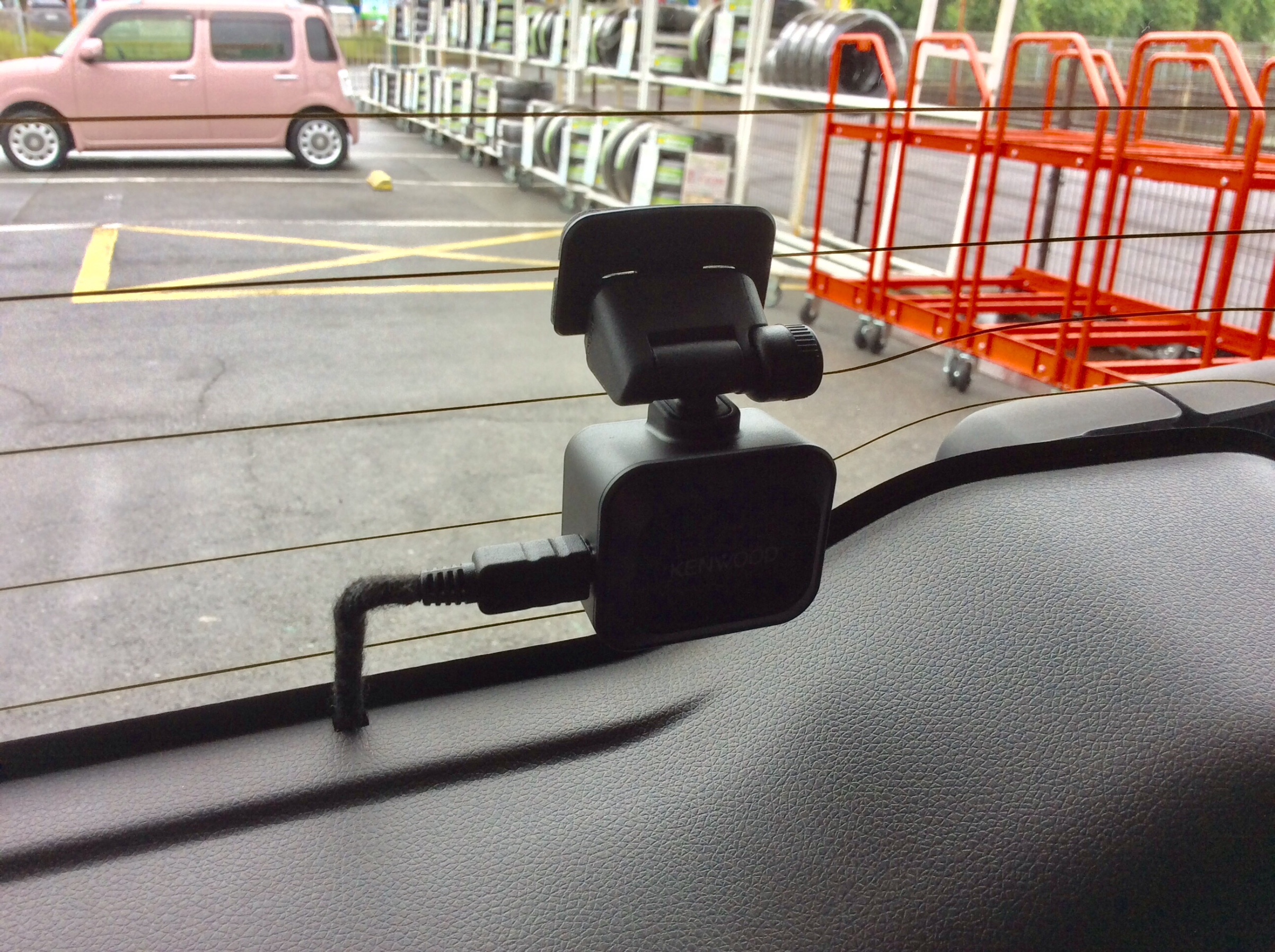 前後撮影タイプのドラレコは、作業工程が多く、おクルマへの取り付けに時間がかかりますが、配線などが極力目立たないように取り付けています。