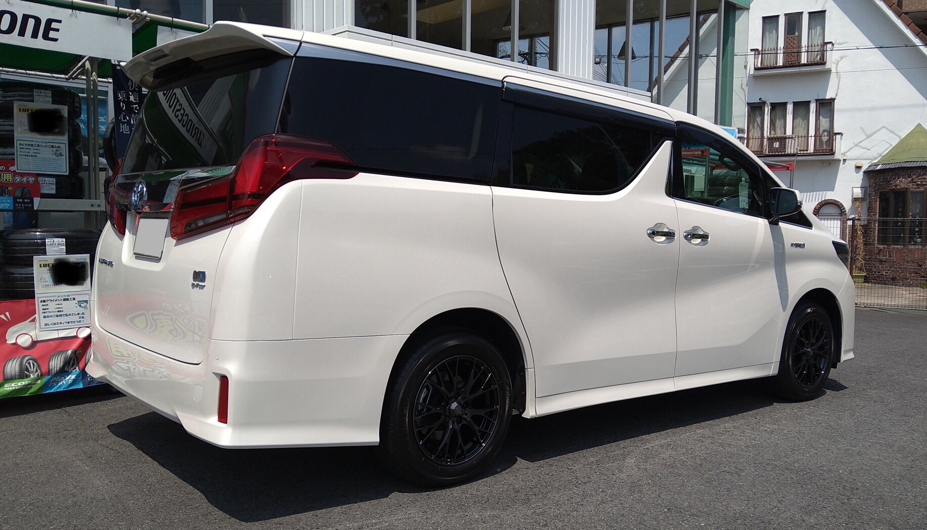 ホイールだけの交換ですが、ガラッと雰囲気が変わって、スタイリッシュなアルファードになったと思います。とてもカッコいい(^^)