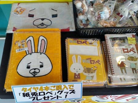 「紙兎ロペ」グッズプレゼントしていま~す。 ポスト 2014年9月16日 9月13日から始まっております、秋のタイヤ安全点検キャンペーン。点検にお越しいただいたお客様に「紙兎ロペ」のクリアファイルをもれなくプレゼントさせていただいています。また、タイヤ4本ご購入いただいたお客様へはさらにもう一点、キャラクターキーホルダー等をプレゼント!10月5日まで実施中です! 担当:北村