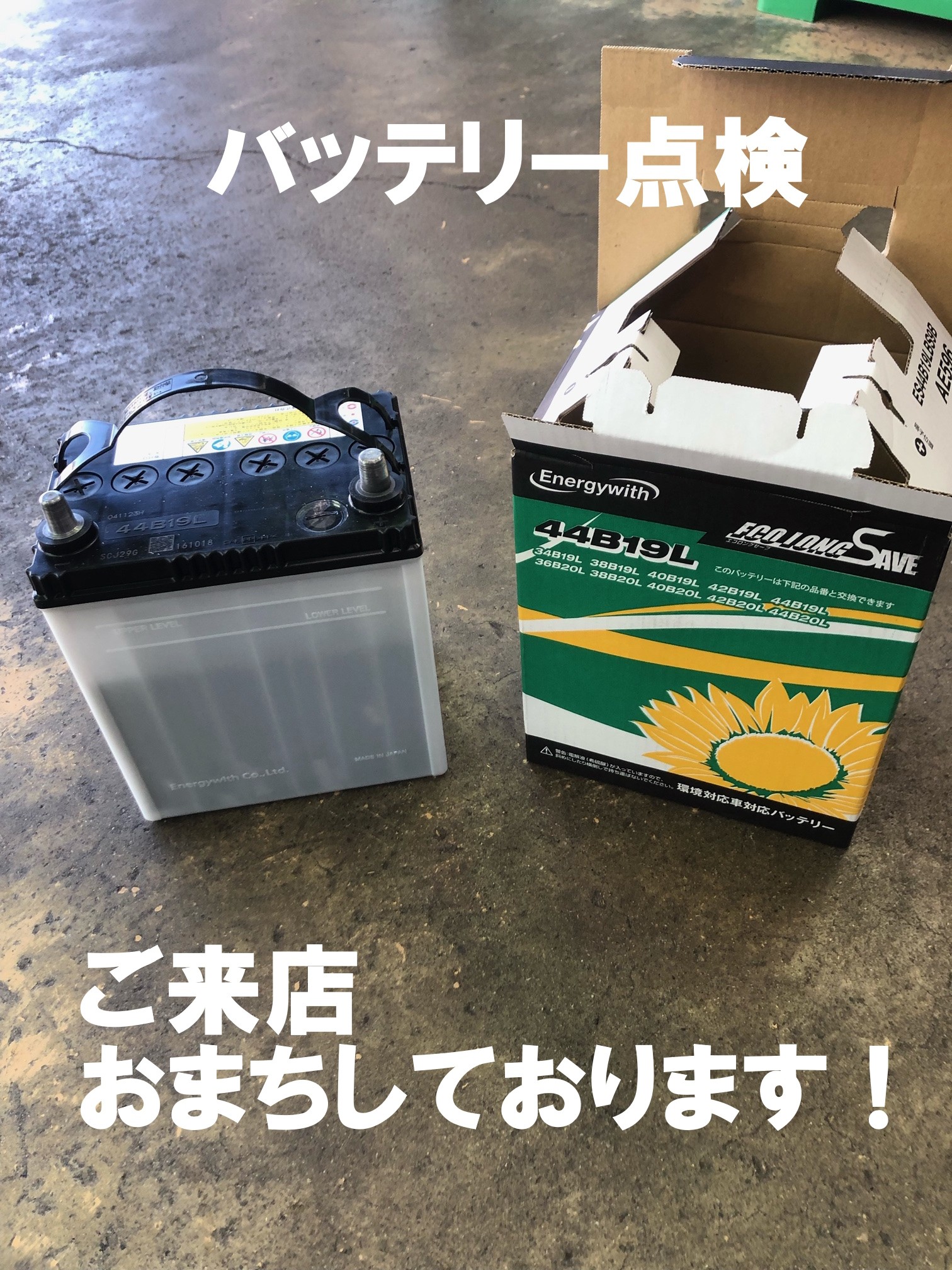 バッテリー交換 ポスト 2024年1月14日 暖冬といいますが、最近冷え込みが厳しい季節ですね!! そんな中負担がかかっているのがバッテリーです…… 今まで大丈夫でも突然バッテリー上がりなどのトラブルになるケースもございます。 そうならないためにも点検や交換時期の把握が大事です!! 無料点検実施していますのでお気軽にご来店下さいませ。 担当:谷