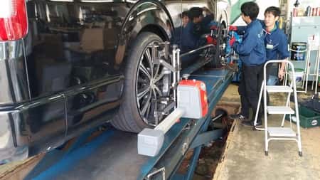 本日もアライメント調整作業でお車の足元を整えさせていただきました。