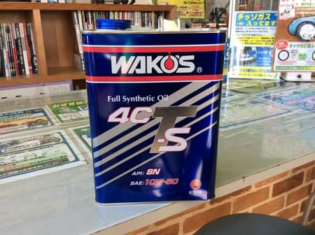 先日はアライメント調整をさせて頂いたのですが、今回はワコーズのエンジンオイル4CTーSでオイル交換をさせて頂きました。