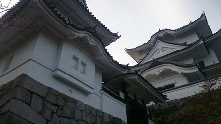 お城にも上りましたが石垣が非常に高くてしかも反り返っています。