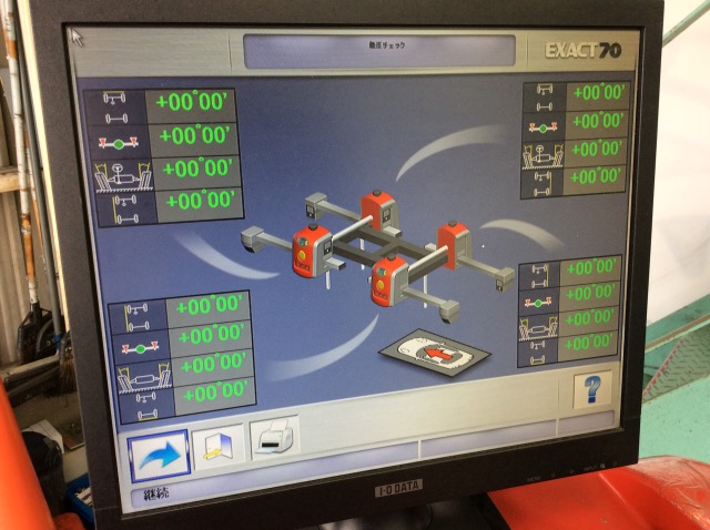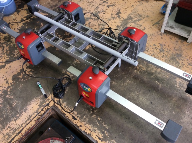 タイヤの適切な取付け角度を調整するアライメント調整作業ですが、その作業の主役「アライメントテスター」という機材↓