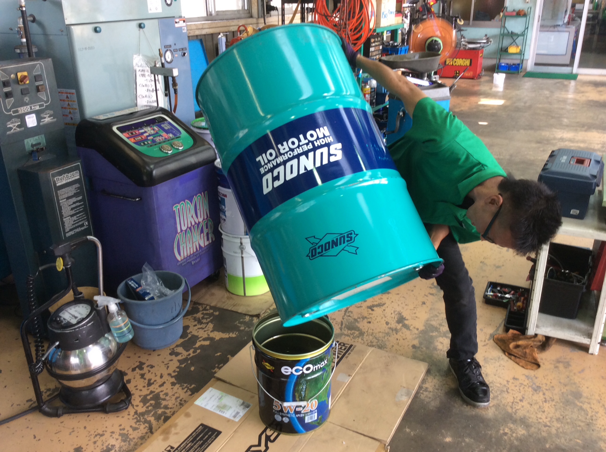 山村スタッフは力持ち?? ポスト 2017年8月3日 山村スタッフ、めっっちゃ怪力ーッ!!!(・∀・) …って、空になったドラム缶ですが(笑) ドラム缶で仕入れているエンジンオイルが少なくなったので、差し替えのために他の容器に移しているところです。パッと見た瞬間びっくりしますよね(笑) ちなみにドラム缶にエンジンオイル満タンだと、だいたい200kg弱(^^;; さすがにそれは重いので、スタッフ2人で転がして運びます(^^) 担当:扇田