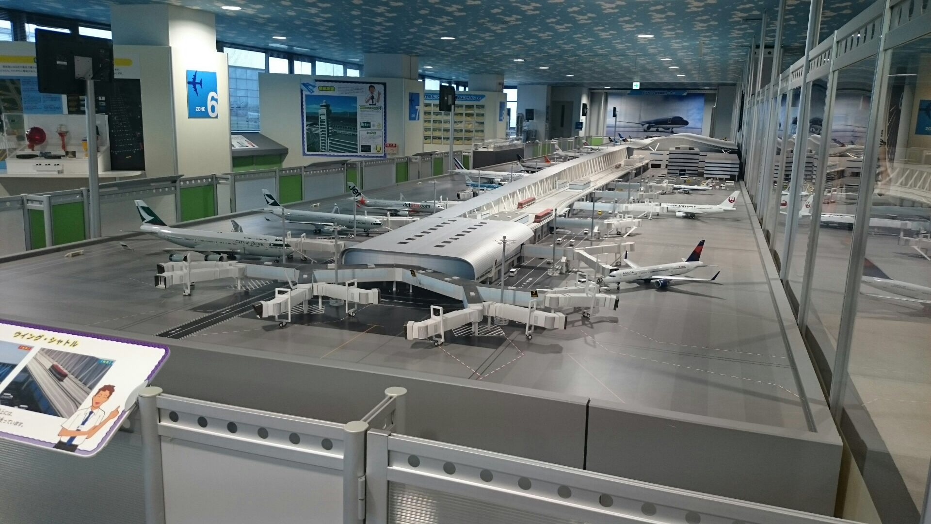 室内の展示スペースには、関空の精巧な模型や、技術・サービスの展示がしてありました。