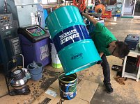 山村スタッフ、めっっちゃ怪力ーッ!!!(・∀・) …って、空になったドラム缶ですが(笑) ドラム缶で仕入れているエンジンオイルが少なくなったので、差し替えのために他の容器に移しているところです。パッと見た瞬間びっくりしますよね(笑) ちなみにドラム缶にエンジンオイル満タンだと、だいた...