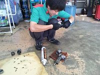 休み無く働く工具たちへ・・・ 扇田エンジニアの手によって 愛のメンテナンスが施されました。 彼がこうやって細々とした事を 夢中でやっている姿を見せたときだけ 彼は「扇田エンジニア」と皆に呼ばれています。 心配で覗きに行っても 邪魔するなオーラを発しているので、 遠目で見守るだけです・...