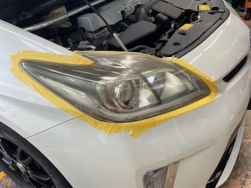 本日も快晴ですのでこんな日はヘッドライトをキレイにしましょうということで、、、 当店大人気のヘッドライトコーティングをN様のプリウスに施工させて頂きました。 まずは入庫後の状態です。 写真では分かりにくいですが、少し黄色い汚れが全体を覆っています。 この汚れを今から落としていきます...