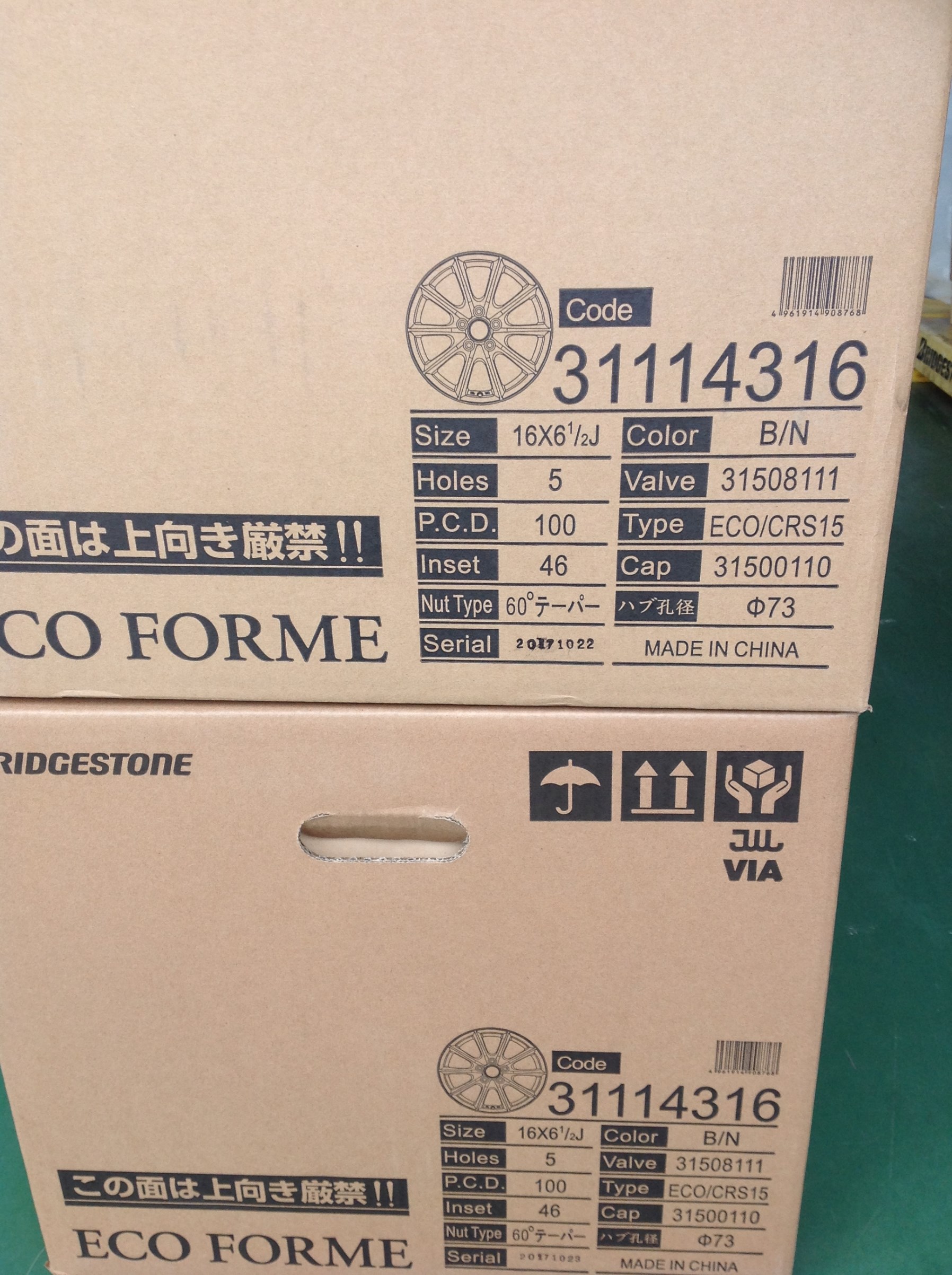 【エコフォルム CRS15】 入荷!! ポスト 2018年5月29日 当店のHPをご覧いただきありがとうございます。 先日、ご注文頂いていたホイールが 本日入荷しました。 サービス事例にてタイヤ交換をご紹介してます。 是非ご覧ください!! カテゴリ:お知らせ