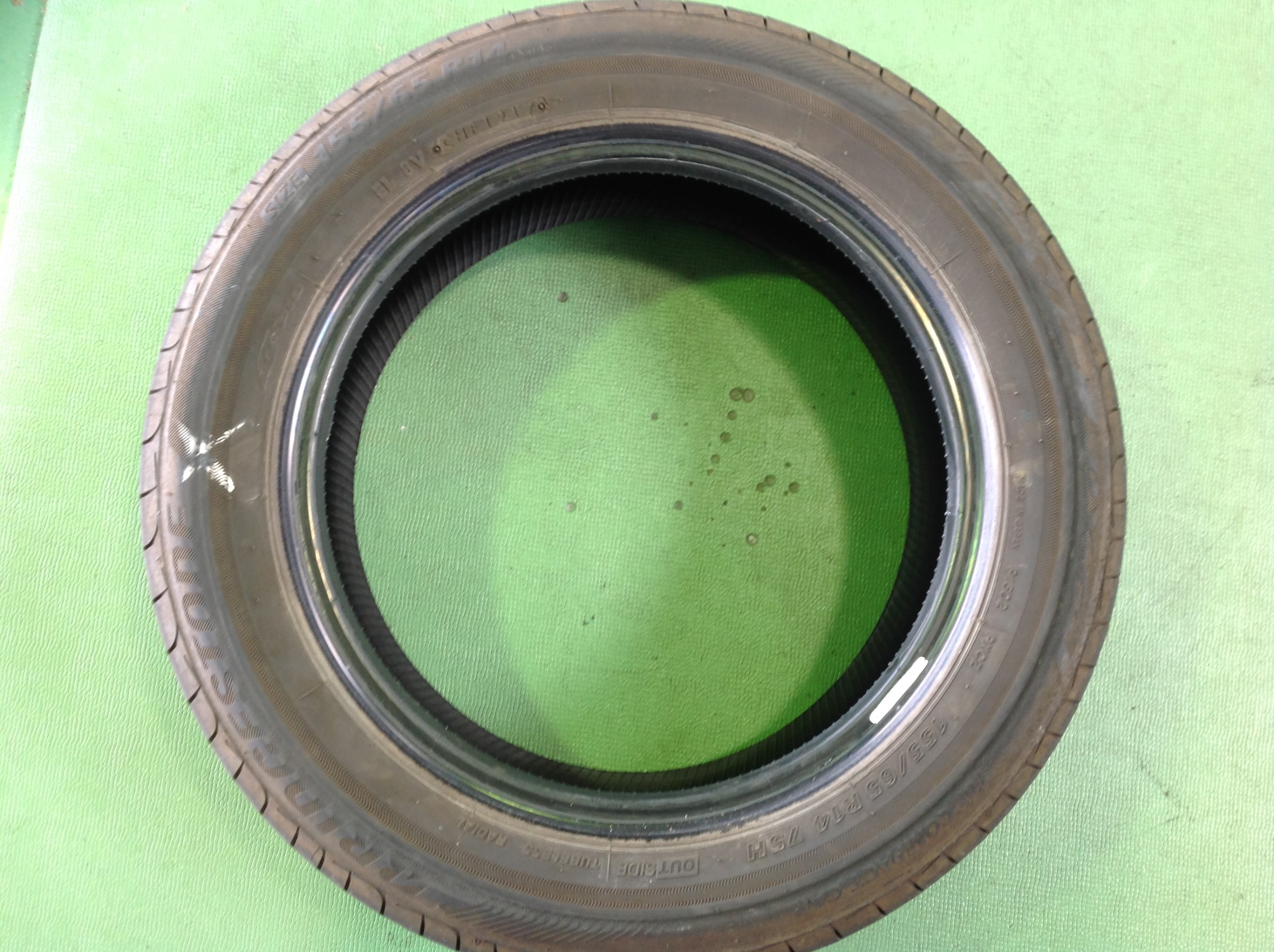 よく見るとタイヤ側面に黒い筋が入ってました。